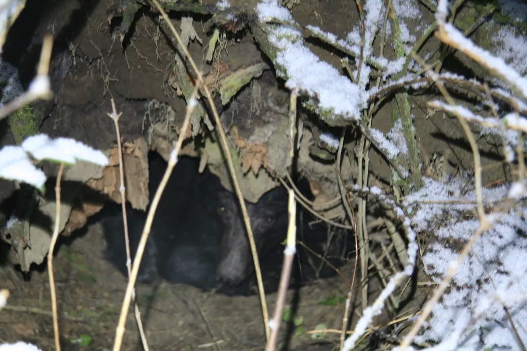 We were looking for a Christmas tree in the woodlot above our house when my kids ran back up to the trail with eyes as big as saucers. There was a bear only fifty feet away underneath that stump!